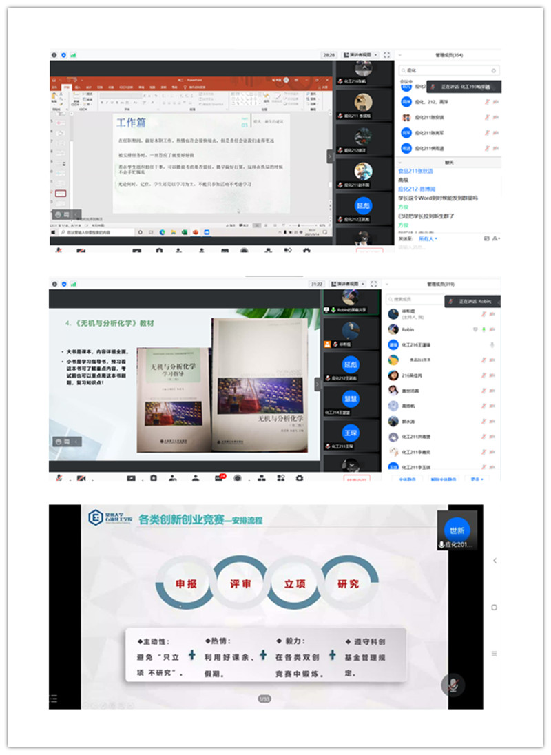 2021級(jí)本科新生入學(xué)教育由思想引領(lǐng)與價(jià)值塑造教育、校情概況與專業(yè)素養(yǎng)教育、入學(xué)適應(yīng)與行為養(yǎng)成教育、學(xué)生安全與心理健康教育、政策解讀與文明規(guī)范教育五大模塊組成,內(nèi)容包含校史校情教育、黨團(tuán)知識(shí)教育、專業(yè)導(dǎo)航教育、安全教育等十三項(xiàng)教育內(nèi)容。針對(duì)疫情防控形勢(shì)下新生延期開學(xué)的情況,學(xué)院全面開展新生線上入學(xué)教育,通過(guò)在線課程、線上專題會(huì)議等形式面向全體新生展開。學(xué)院進(jìn)行針對(duì)學(xué)院具體實(shí)際來(lái)開展學(xué)院、專業(yè)介紹、專業(yè)思想教育、學(xué)生適應(yīng)性教育、班主任開班會(huì)、在線干部競(jìng)選、學(xué)院社團(tuán)線上交流會(huì)等,使新生對(duì)大學(xué)生活與學(xué)習(xí)有全面了解。全體新同學(xué)認(rèn)真參加線上入學(xué)教育,以飽滿熱情迎接大學(xué)新生活。