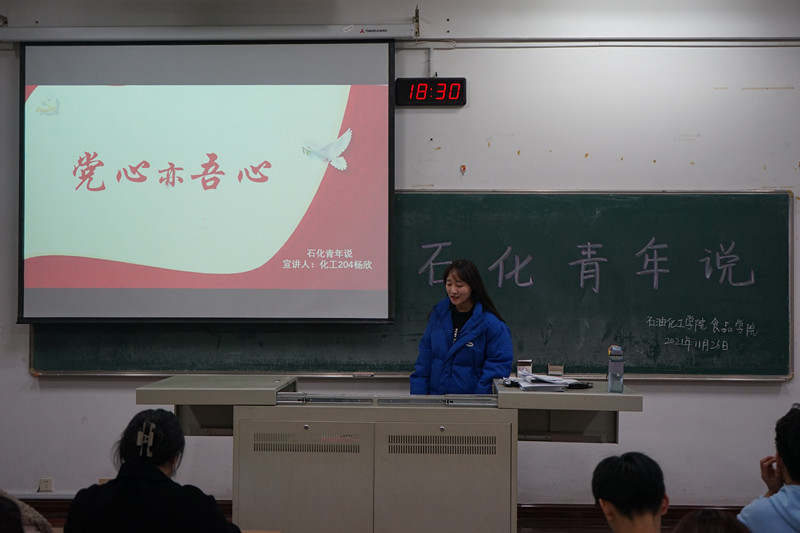 為營(yíng)造學(xué)習(xí)先進(jìn)、崇尚先進(jìn)的良好氛圍,深入落實(shí)黨史學(xué)習(xí)教育,增強(qiáng)廣大學(xué)生的使命感和責(zé)任感,11月25日18:30,我院在w1206開(kāi)展先進(jìn)人物事跡分享會(huì)。本次分享會(huì)由化工204楊欣主講。