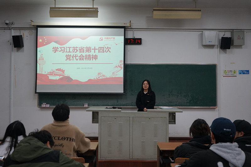 為引導(dǎo)全省廣大團(tuán)員青年深入學(xué)習(xí)領(lǐng)會(huì)江蘇省第十四次黨代會(huì)精神,讓學(xué)生自覺把思想和行動(dòng)統(tǒng)一到落實(shí)大會(huì)確定的各項(xiàng)目標(biāo)任務(wù)上來,沿著習(xí)近平總書記指引的方向奮勇前進(jìn),我院于12月20日17時(shí)在W1210開展省第十四次黨代會(huì)精神學(xué)習(xí)會(huì),由孫潘主講,學(xué)生骨干及青馬學(xué)員參加。
