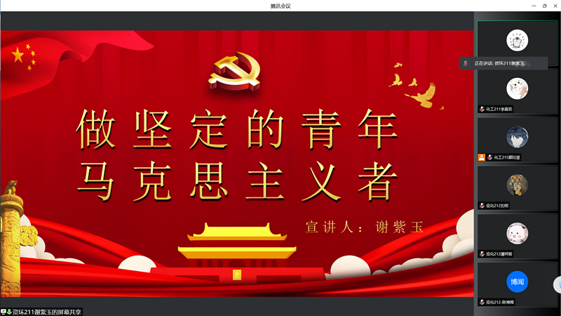 為了讓同學(xué)們更加深入地了解馬克思主義,領(lǐng)悟馬克思主義對(duì)新中國的影響,貫徹落實(shí)習(xí)近平新時(shí)代中國特色社會(huì)主義思想,幫助同學(xué)們樹立正確世界觀、人生觀、價(jià)值觀,4月25日,我院組織學(xué)生開展石化青年說——做堅(jiān)定的青年馬克思主義者。本次會(huì)議由資環(huán)211謝紫玉主講。