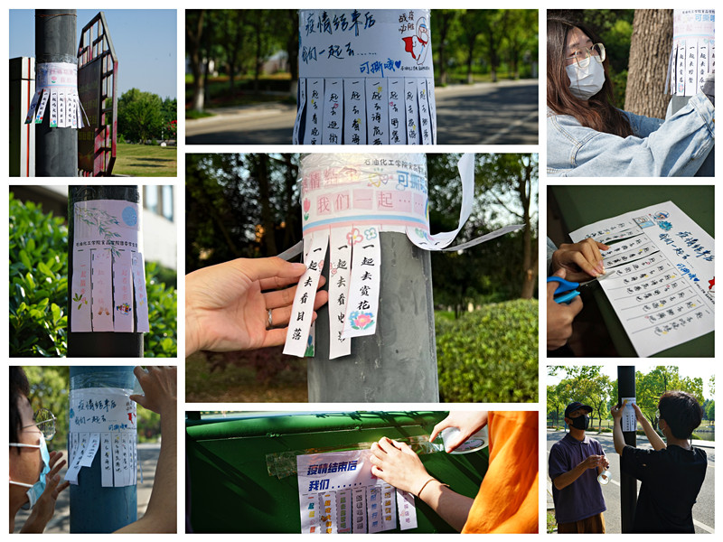 各具風(fēng)格的手制便利貼上,極具創(chuàng)意的圖案文字、小心翼翼的邊框剪裁,每一筆都蘊(yùn)含著激情、每一筆都蘊(yùn)含著希望。燈柱上、樹干上、花壇旁……校園內(nèi)的各個(gè)角落都貼滿了“濃濃真情”,成為校園內(nèi)別樣的風(fēng)景線。“一起吃火鍋”、“一起看電影”、“一起去露營”、“一起去海邊”、“一起去音樂節(jié)”······這些心愿便利貼飽含著同學(xué)們對(duì)解封校園的期待,承載著“成功抗擊疫情”的愿望。