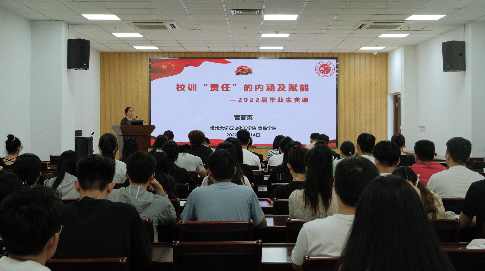 6月14日,石油化工學(xué)院開(kāi)展2022屆畢業(yè)生黨員“畢業(yè)一課”活動(dòng),學(xué)院黨委書(shū)記管春英以“校訓(xùn)‘責(zé)任’的內(nèi)涵與賦能”為主題進(jìn)行授課,畢業(yè)生黨員與學(xué)院全體輔導(dǎo)員聆聽(tīng)黨課。