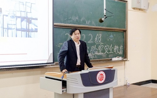 為增強我院2022級新生實驗室安全意識,有效防范實驗室危險事故,確保校園安全穩(wěn)定。2022年11月8日,我院于W4階開展2022級本科新生實驗室安全教育講座,特邀實驗室建設(shè)與管理處處長馬江權(quán)主講,學工辦副主任陳科、輔導(dǎo)員唐弋欽、謝德華及2022級全體本科新生到場參會。