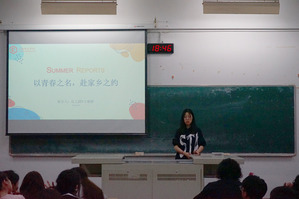 為展示返鄉(xiāng)宣傳成果,體現(xiàn)青春活力,我院于4月22日在W1206教室開展“石化青年說”系列講座第三講——以青春之名,赴家鄉(xiāng)之約。本次講座由化工231王雅靜和能化221董倚帆主講,我院學生代表參加。