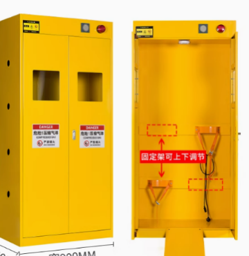 1、柜體材質(zhì):1.2mm厚冷軋鋼板,環(huán)氧樹脂粉末靜電噴涂,門板內(nèi)嵌3mm透明玻璃,一體鎖拉手,隱藏式不銹鋼承重合頁(yè), 配鋼瓶防倒鋼鏈,底部帶鋼搬運(yùn)斜坡。