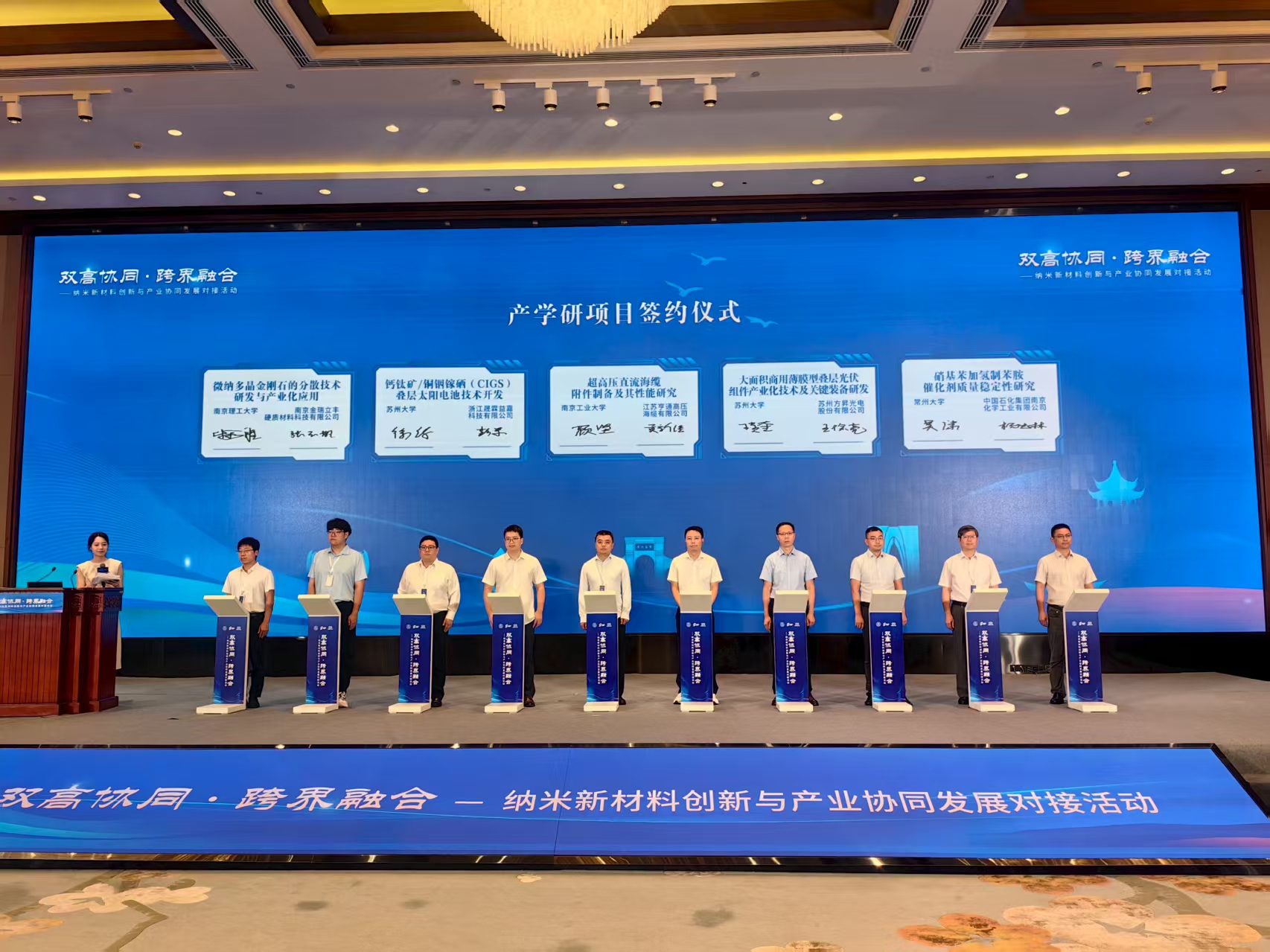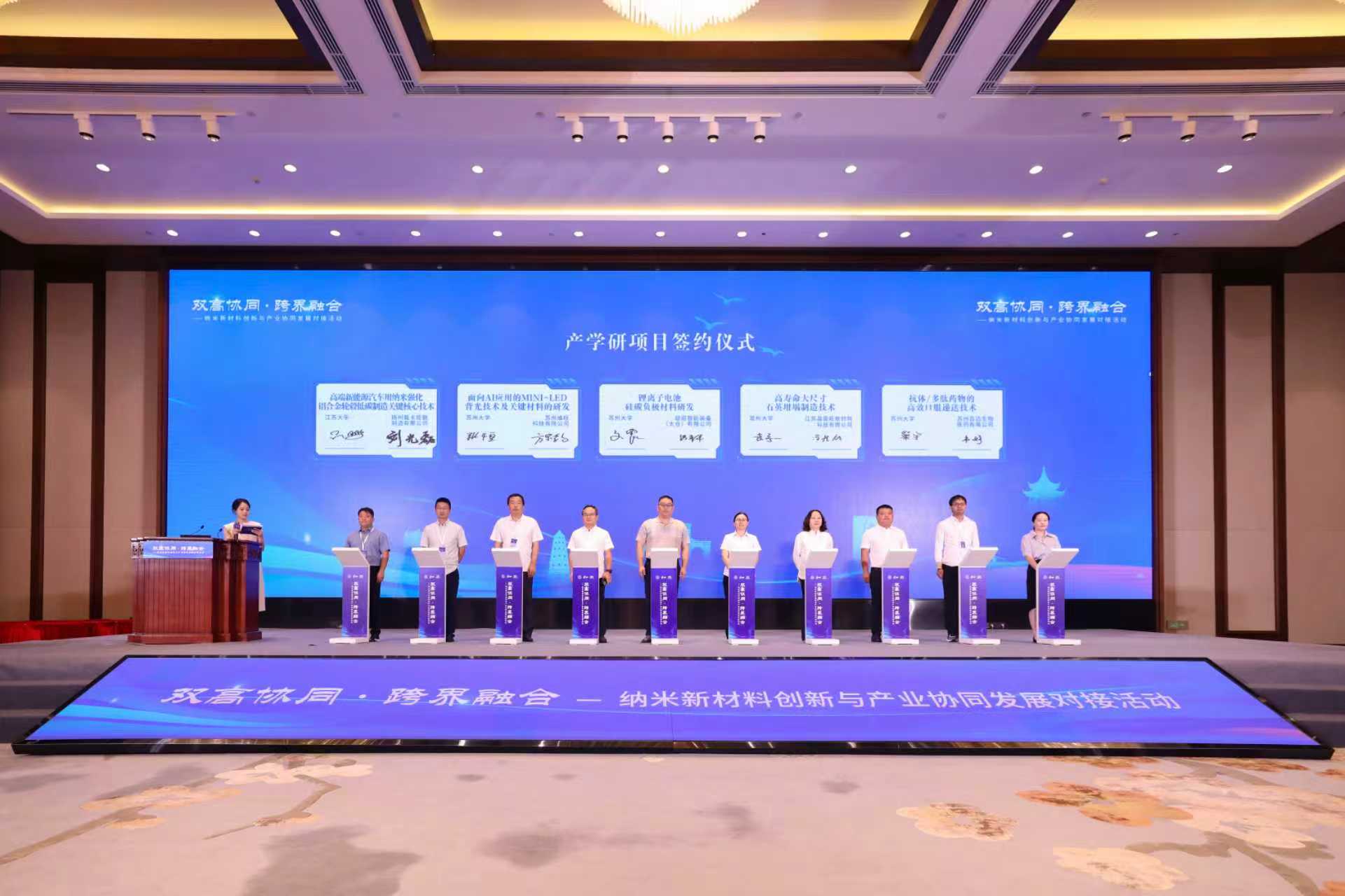 蘇州納米科技協(xié)同創(chuàng)新中心與全國高校先進材料區(qū)域技術(shù)轉(zhuǎn)移轉(zhuǎn)化中心(江蘇)簽署合作協(xié)議,中國藥科大學等6所高校協(xié)同創(chuàng)新中心與全國高校生物醫(yī)藥區(qū)域技術(shù)轉(zhuǎn)移轉(zhuǎn)化中心(江蘇蘇州)達成共建共識,10個校企合作項目同步簽約,其中我校光伏科學與工程協(xié)同創(chuàng)新中心、先進催化與綠色制造協(xié)同創(chuàng)新中心分別與江蘇晶盛旺新材料科技有限公司、中石化南京化工研究院有限公司簽約合作項目。常州大學等江蘇高校納米新材料領(lǐng)域多項重大科技成果同步發(fā)布,涵蓋光伏、生物醫(yī)藥、環(huán)境治理、半導(dǎo)體材料等關(guān)鍵領(lǐng)域。